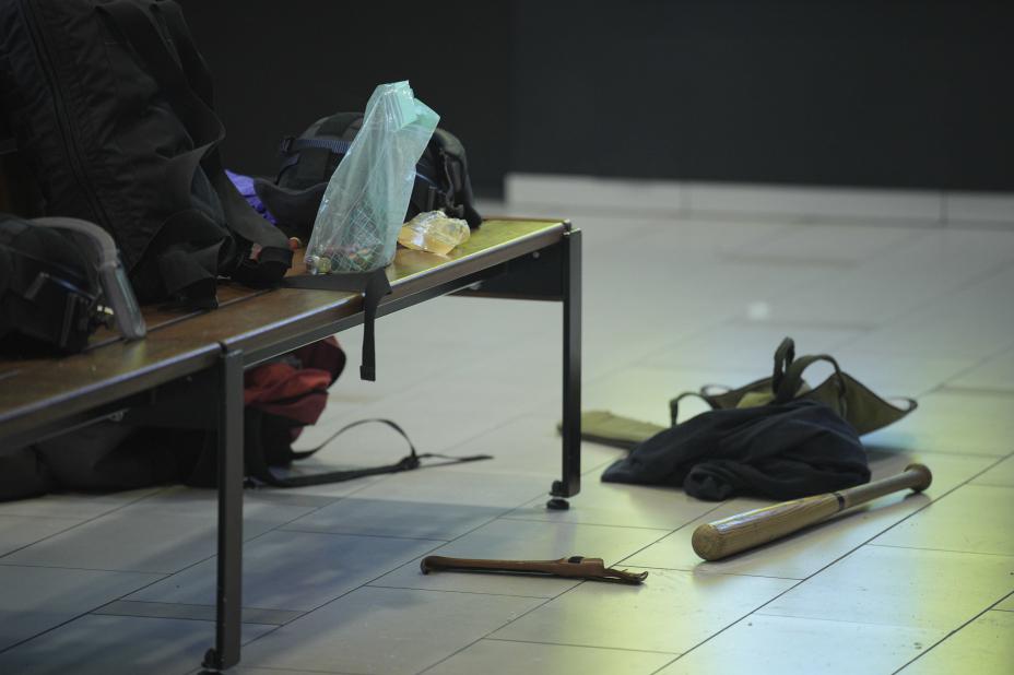 Mannen var samarbeidsvillig da han ble pågrepet, ifølge politiet. Mannen brukte en tohåndshagle som ble funnet «i umiddelbar nærhet» til den mistenkte mannen. Det ble også funnet et balltre og muligens en kniv, sa innsatsleder Tom Berger til pressen tidligere mandag.