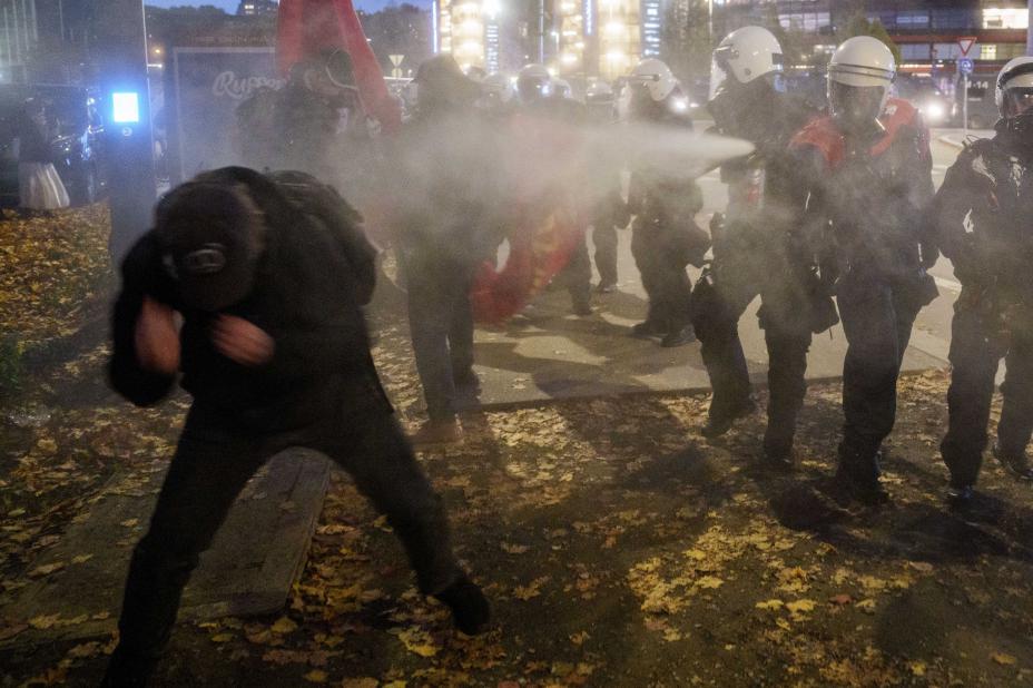 I løpet av kvelden brukte politiet tåregass for å få kontroll på demonstrantene.