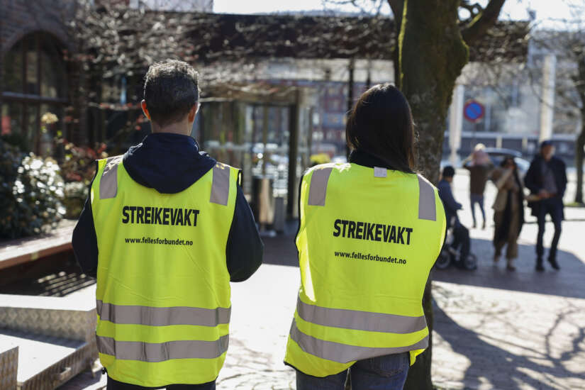 Streikevakter utenfor Radisson Blu Royal Hotel Bryggen i Bergen. Foto: Silje Katrine Robinson / NTB