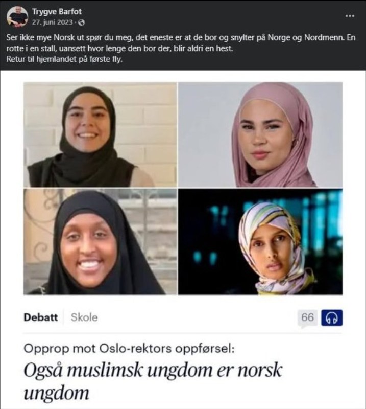 Barfot ble dømt for hatefulle ytringer etter et Facebook-innlegg rettet mot hijab-kledde kvinner, en dom som tidligere også ble avsagt i tingretten.