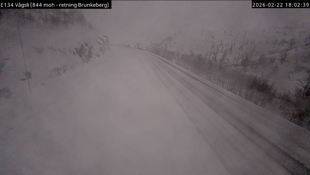 Advarselen gjelder særlig strekningen ved Vågsli i retning Røldal, der webkamera viser vinterlige forhold søndag ettermiddag.
