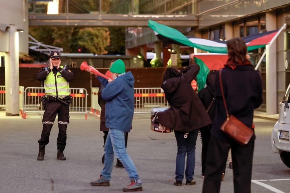 Det er varslet demonstrasjoner utenfor Ullevaal stadion lørdag kveld i forbindelse med landskampen mot Israel. Her fra en markering dagen før kampen. Foto: Jonas Been Henriksen / NTB