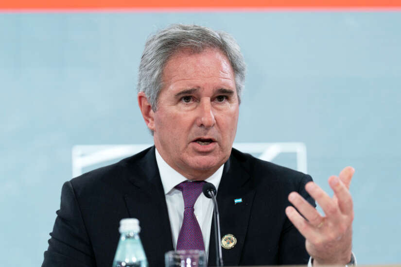 USAs: – Argentina gjentar ønsket om å gjenoppta bilaterale forhandlinger med Storbritannia for å komme fram til en fredelig og endelig løsning på uenigheten om suverenitet og få en slutt på denne spesielle og særegne kolonisituasjonen, sa utenriksminister Pablo Quirno fredag.