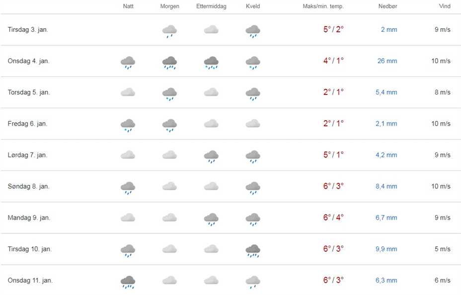 Oppdaterte værvarsler viser at det skal være mildt med mye regn og vind også de neste 10 dagene av det nye året. Værvarsel: Mildværet kom etter...