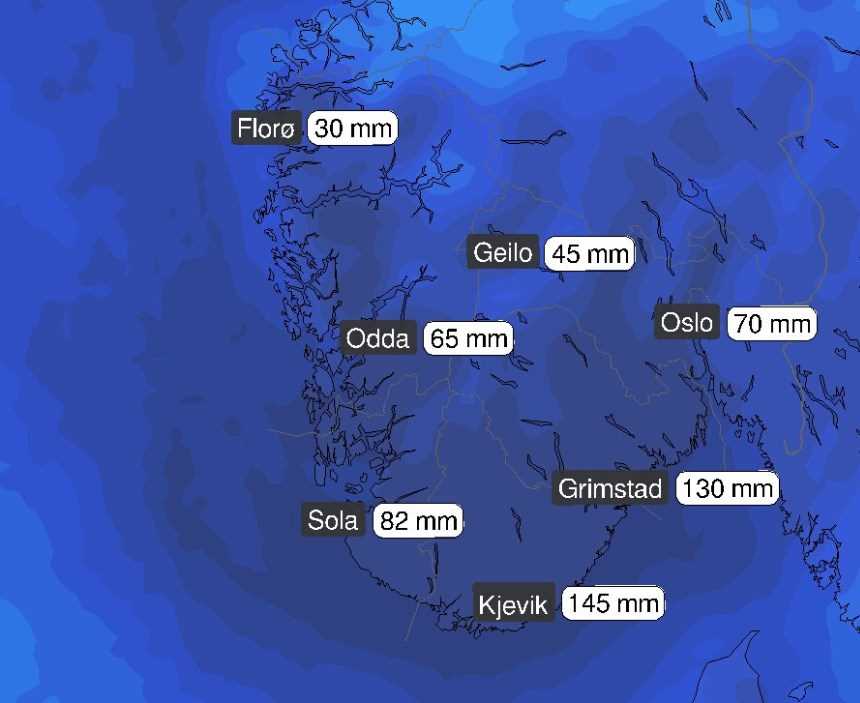 Vi kan på våre trakter få over 80 mm regn de neste dagene. Nedbør: Det blir kraftig lavtrykksaktivitet i Sør-Norge de neste dagene. – Vi har...
