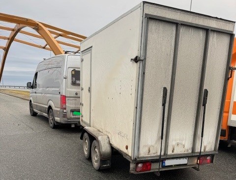 En varebil med tilhenger ble ilagt bruksforbud etter at det ble avdekket brudd på reglene om kjøre- og hviletid. Kjøretøykombinasjonen var over 3.500 kilo og skulle hatt fartsskriver installert. Foretaket ble anmeldt til politiet for å ha kjørt transport underlagt regelverket uten fartsskriver.
