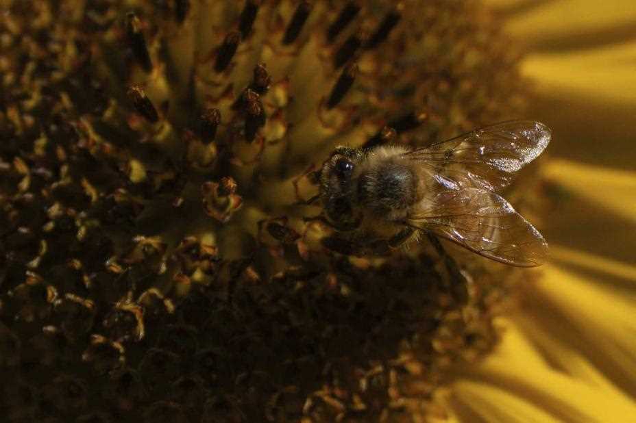 En bie pollinerer en solsikke. Foto: Jenny Kane / AP / NTB