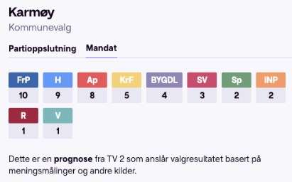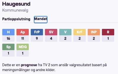 I TV2 sin siste kommunemåling er det Høyre og Frp som dominerer i Haugesund og Karmøy.