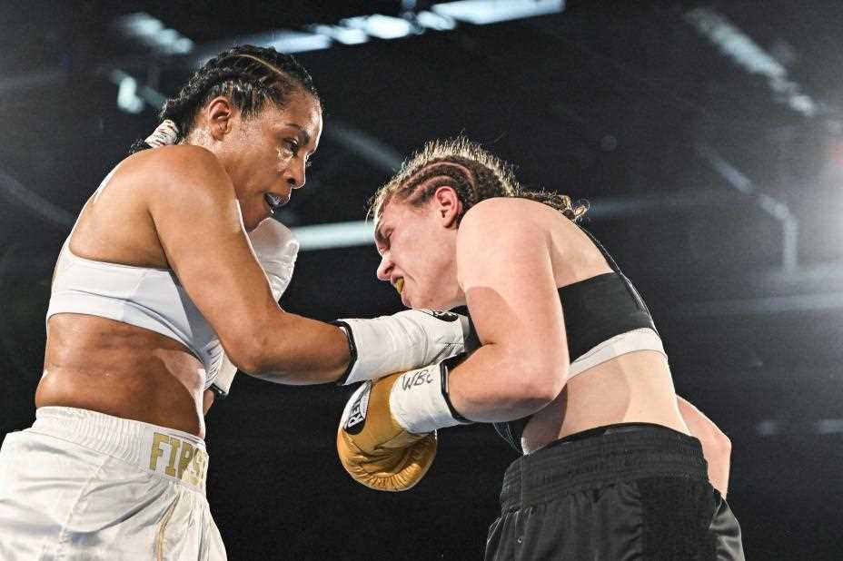 Pressekonferanse og face-off med Cecilia Brækhus og Ema Kozin før boksekampen på lørdag. Foto: Jonas Been Henriksen / NTB