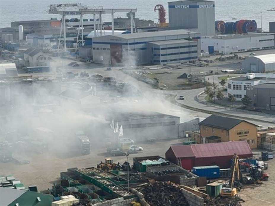 Brannmelding: Det var hos Ragnsells på Eldøyane at det kom kraftig med røyk fra en lagerbygning i ettermiddag.