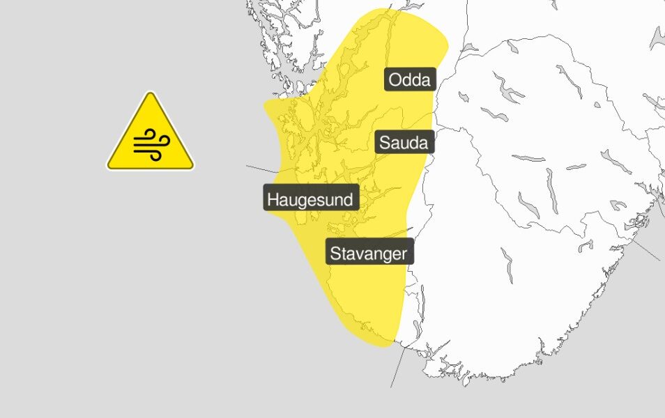 Meteorologisk institutt har sendt ut gult farevarsel om kraftige vindkast for sørlige deler av Vestlandet torsdag 12. mars. Varselet gjelder fra klokken 20.00 til 23.59.