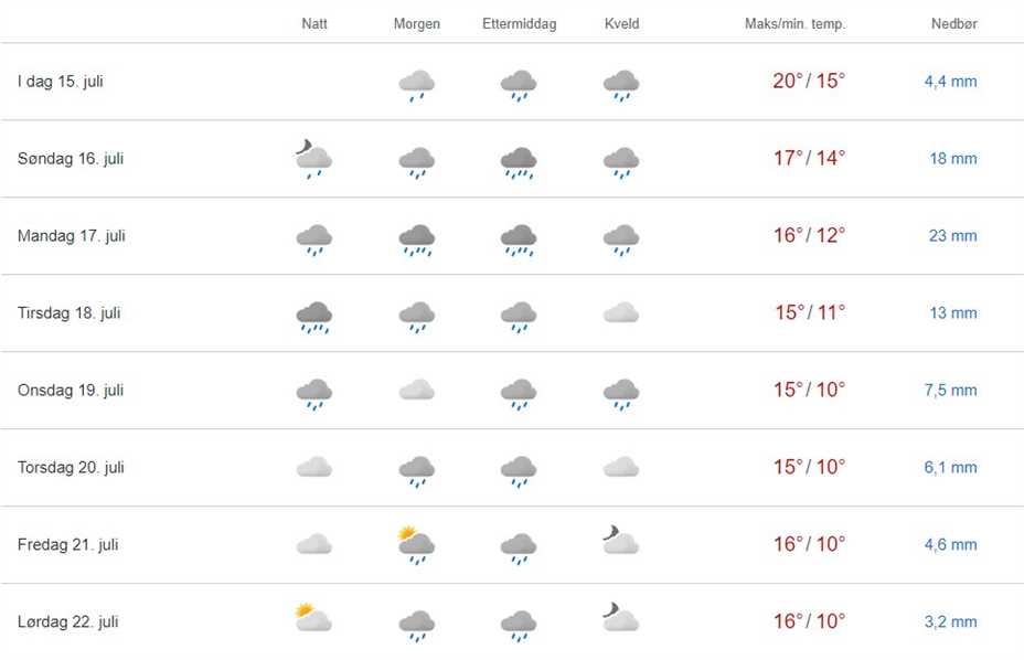 Varslene endrer seg fra dag til og vi kan jo bare håpe på at meteorologene tar feil og at vi får bedre vær enn varslet.