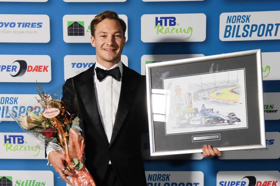 Dennis Hauger (22) fikk lørdag prisen som årets bilsportutøver av Norges Bilsportforbund.