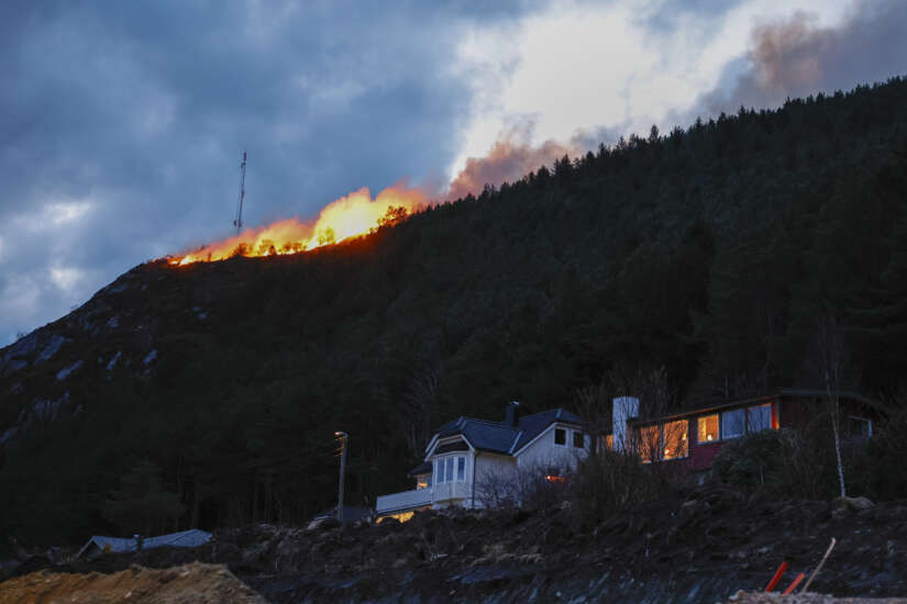 Det brenner i lyng i ytre bydel av Ålesund. Foto: Svein Ove Ekornesvåg / NTB