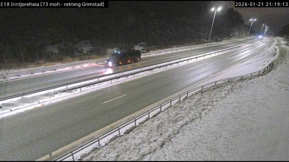 Politiet ble varslet klokken 08.56 mandag. Ved 13.30-tiden melder Vegtrafikksentralen sør at veien igjen er åpnet i retning Oslo, mens det er skiltet omkjøring via fylkesvei 420 i retning Kristiansand.