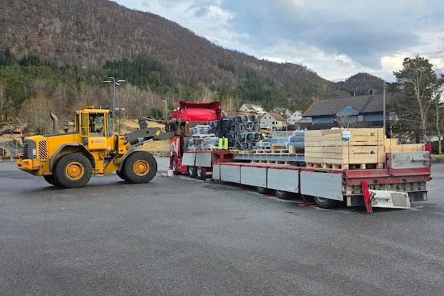Onsdag kveld ble det største fanggjerdet fra lageret lastet på bil og sendt til skredområdet. Lageret ble nylig etablert for å sikre rask tilgang til utstyr ved hendelser som skred og ekstremvær.