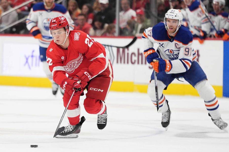 Michael Brandsegg-Nygård og hans Detroit Red Wings har fått en ypperlig start på NHL-sesongen. Søndag ble Edmonton Oilers slått 4-2.