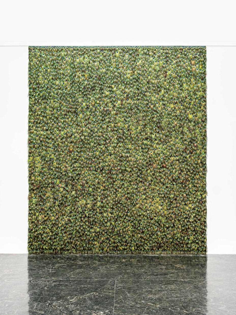«The Colour of Paradise» av Gelawesh Waledkhani består av 3500 påfuglfjær og representerer historiene til de tusenvis av jesidikvinner som ble bortført av IS i 2014. Foto: Vegard Kleven / Norske billedkunstnere / Handout / NTB