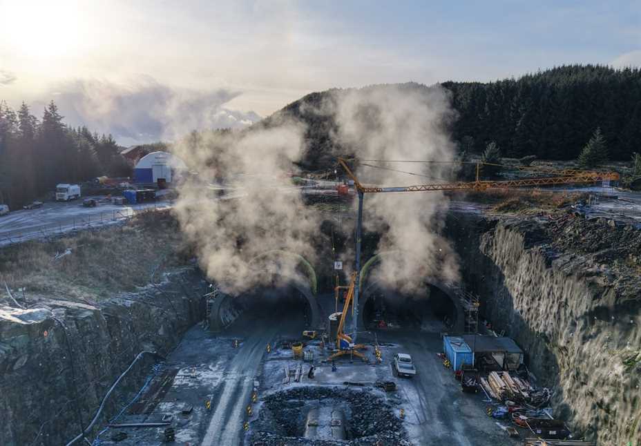 Rogfast: Statens vegvesen opplyser at dampen som nylig ble observert ved tunnelåpningene ikke skyldes brann. Den kommer av temperaturforskjeller mellom tunnel og uteluft.