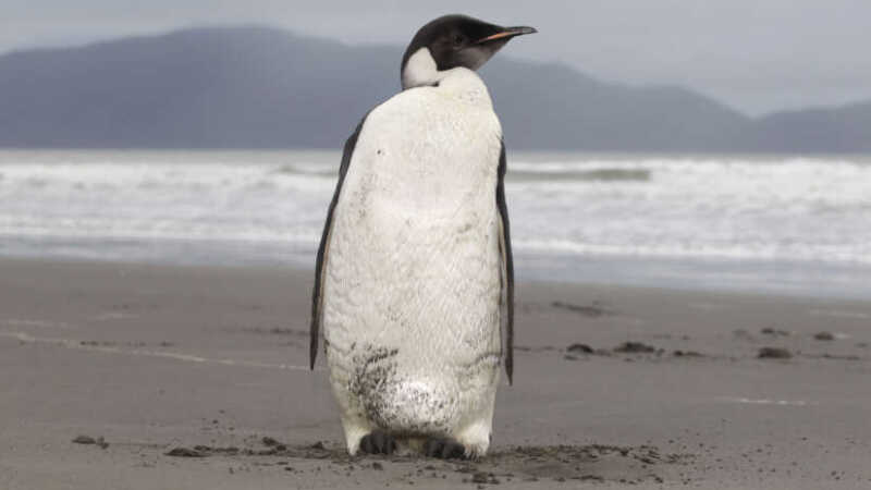 Keiserpingvinen er svartblå og hvit, med guloransje ørelapper. Arten er den største av nålevende pingviner.