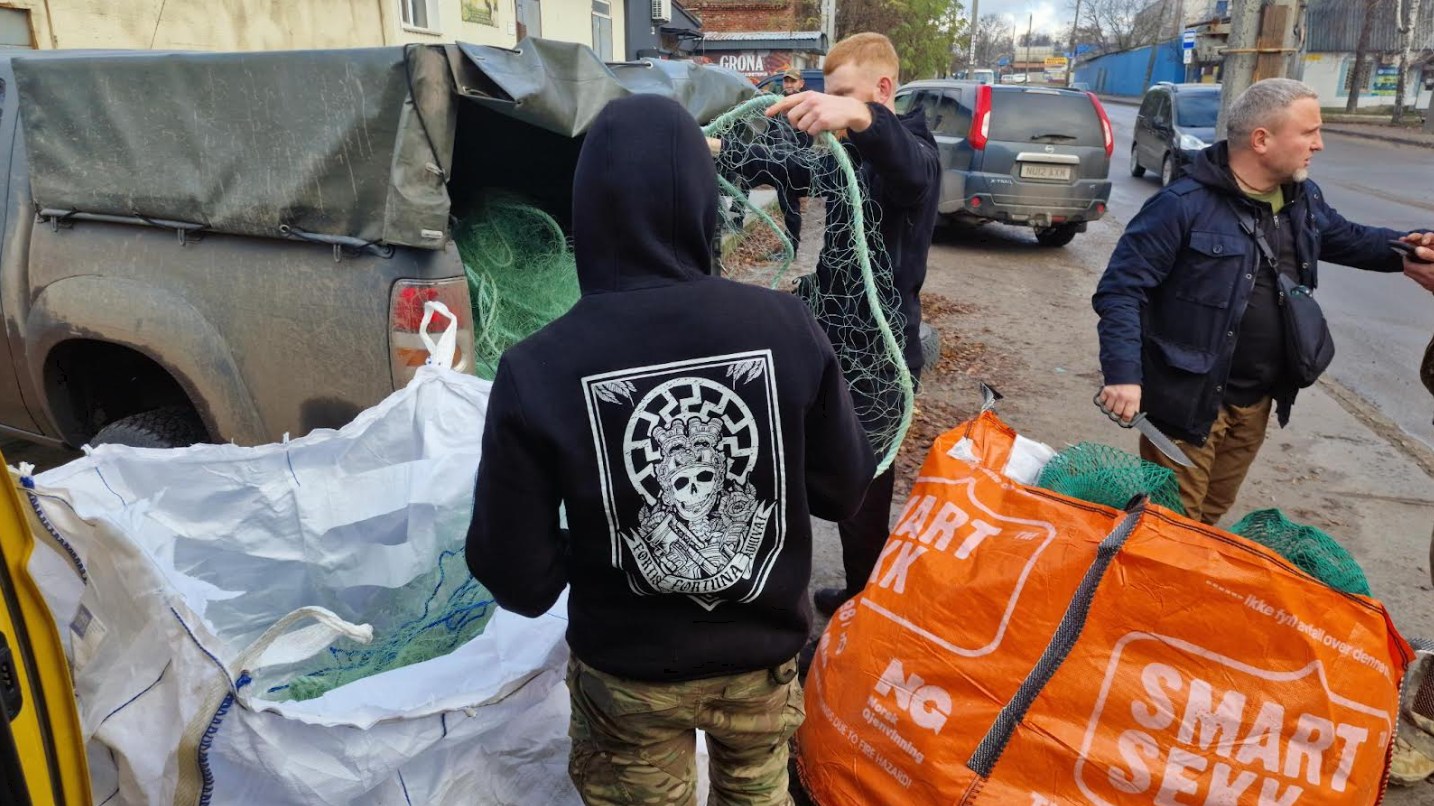 Ukraina: Turen er arrangert av den norske hjelpeorganisasjonen NorseAid, som blant annet har fraktet flere tonn med garn samlet inn på Haugalandet. Garnet brukes til kamuflasjenett som beskytter mot droneangrep.