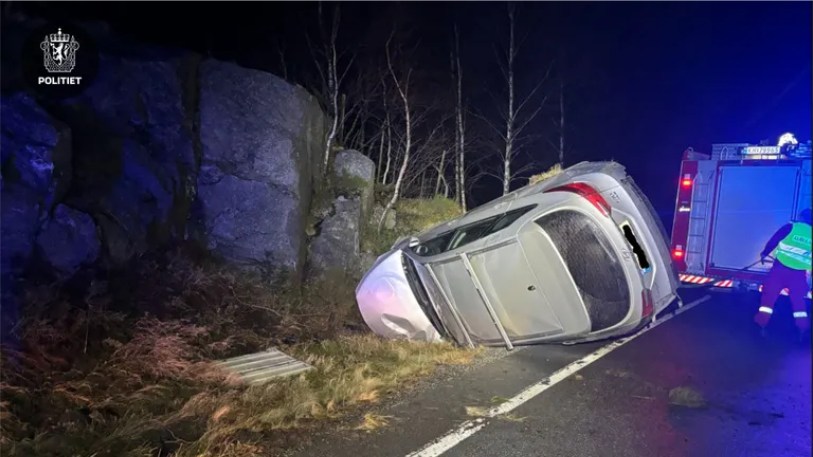 Det er rapportert om vann i bilen, som ligger på siden. Alle tre nødetater rykket raskt ut til stedet.