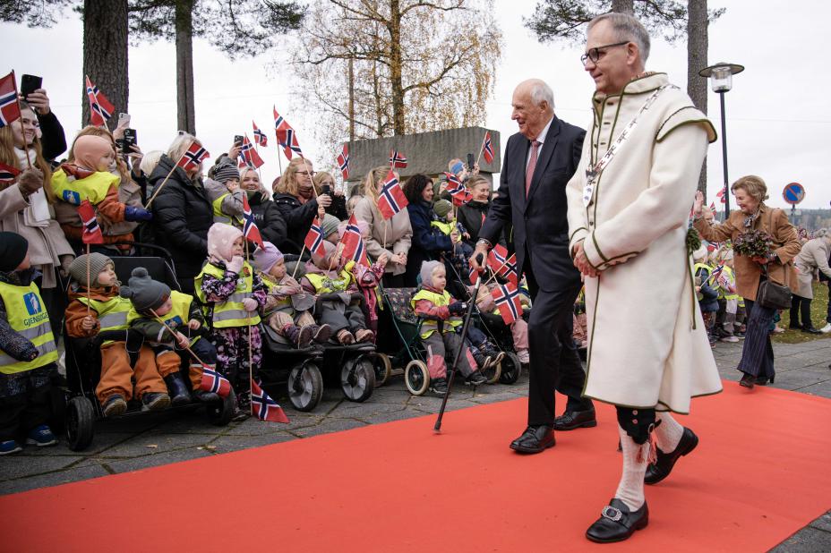 Sport: – Så hyggelig å være her hos dere. Dronningen og jeg har gledet oss til besøket. Vi besøker Aremark for første gang, det synes vi var på tide, sa kongen i talen sin.