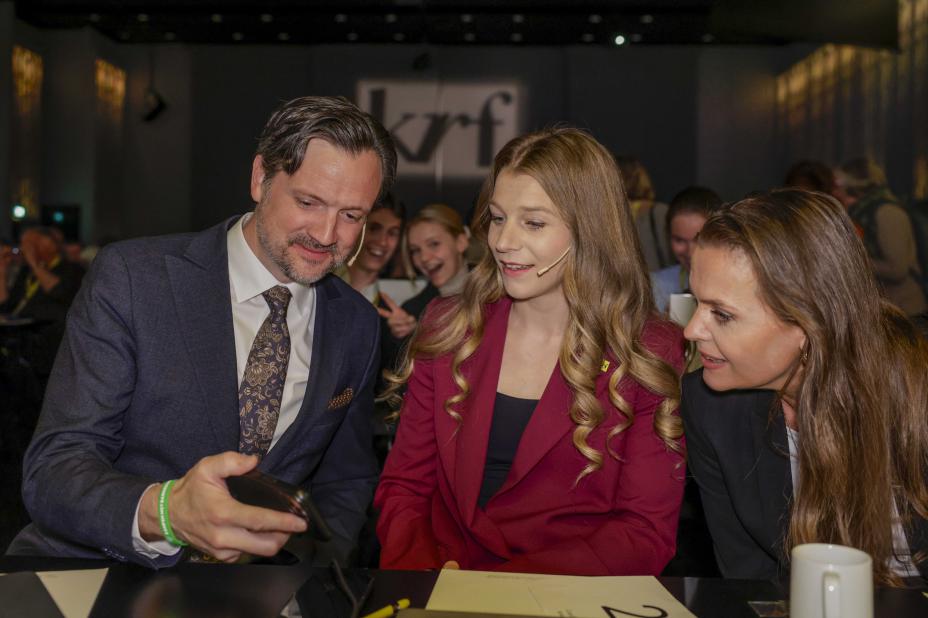 KrF-leder Dag-Inge Ulstein og nestlederne Ida Lindtveit Røse og Jorunn Elisabet Gleditsch Lossius på landsmøtet i Bergen tidligere i år. Foto: Paul S. Amundsen / NTB