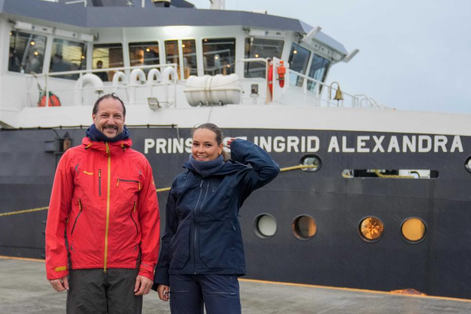 Kronprins Haakon og prinsesse Ingrid Alexandra deltar på et brislingtokt i Oslofjorden, sammen med forskere fra Havforskningsinstituttet. Foto: Heiko Junge / NTB / POOL