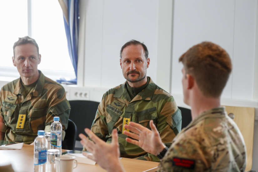 Tirsdag snakket kronprinsen med forsvarssjefen samt en rekke soldater som deltar på øvelsen.