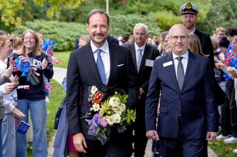 Kronprinsen på plass i USA – møtt med lefser og norske flagg