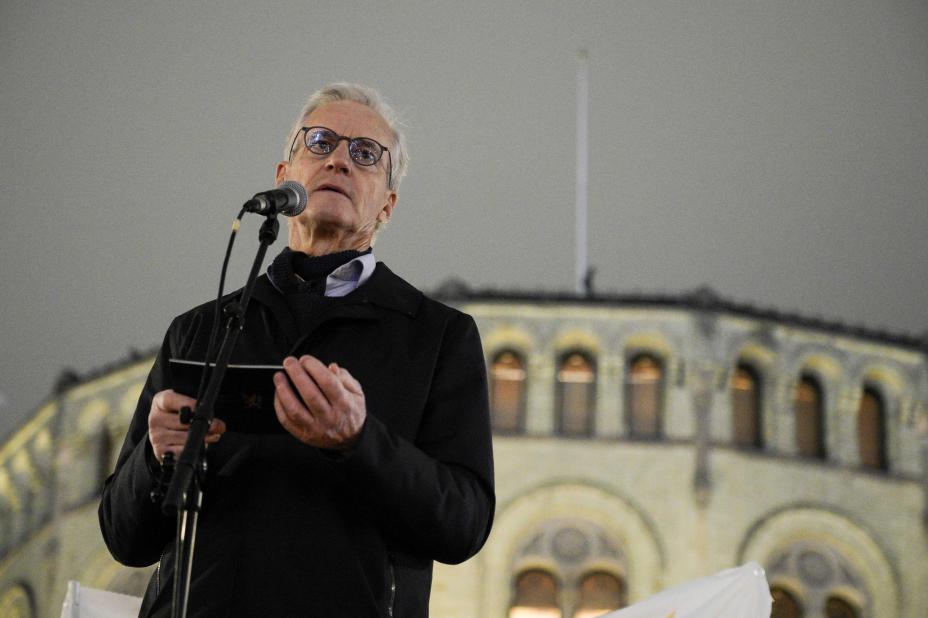 – Det er bedre å tenne et lys enn å forbanne mørket, sto det på et banner foran Stortinget søndag. Krystallnatten ble markert med statsministeren som taler.