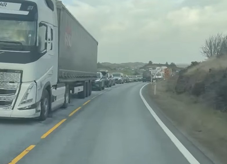 Bjørn Berg fra Vedavågen var på vei hjem da han filmet den lange køen inn mot Arsvågen ferjekai. Flere bilister melder om timevis med venting.