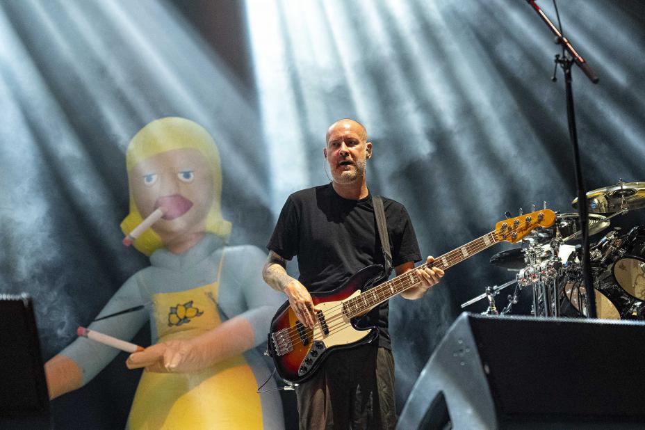Limp Bizkit-bassisten Sam Rivers er død. Her er han avbildet under en konsert i 2023. Foto: Amy Harris / Invision via AP / NTB
