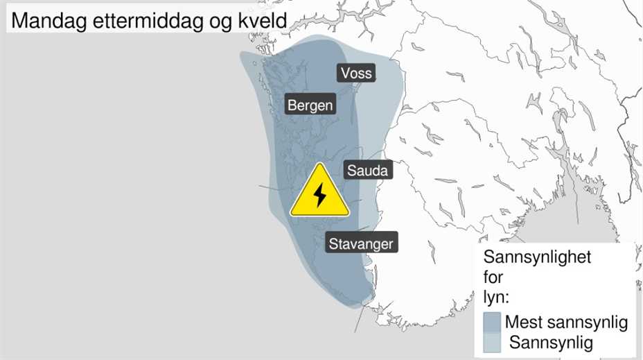 Mandag er det slutt på sommerværet og vi får både styrtregn og lyn på Haugalandet og i Sunnhordland.
