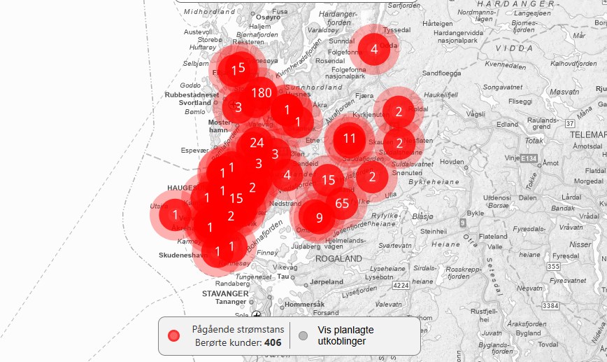 På Haugalandet var det søndag formiddag fortsatt over 400 kunder som ikke hadde strøm.