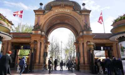 Gjester ved inngangen til fornøyelsesparken Epic Universe i Orlando i USA i april. Foto: John Raoux / AP / NTB