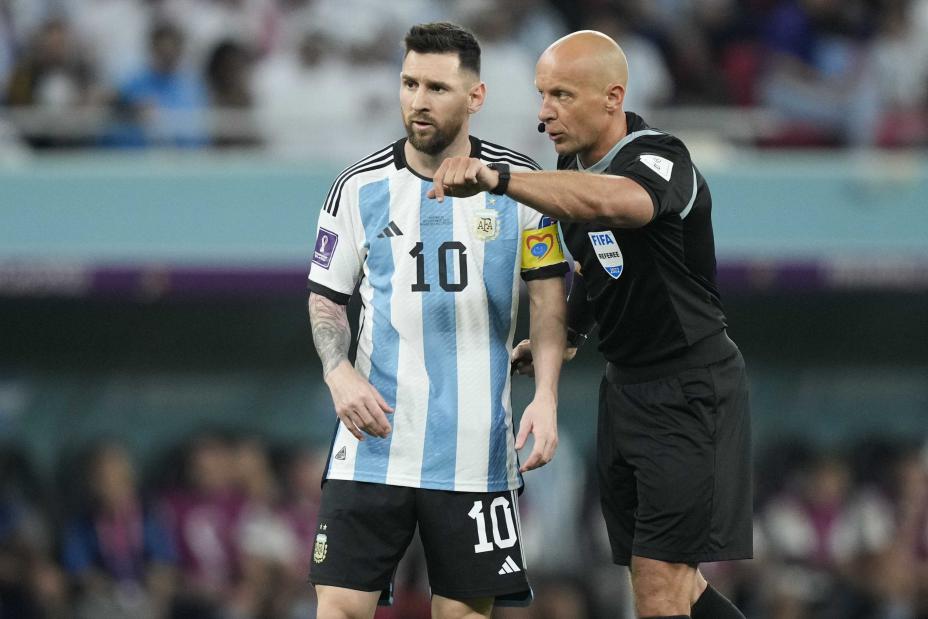 Szymon Marciniak dømmer Norges kamp mot Israel på Ullevaal. Her er han med Lionel Messi i VM-finalen i 2022. Foto: Jorge Saenz, AP / NTB