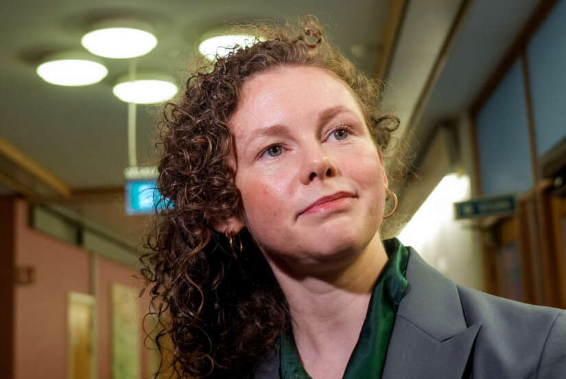 Ingrid Liland (MDG) på vei inn til oppvaskmøtet på Stortinget torsdag. Foto: Terje Pedersen / NTB