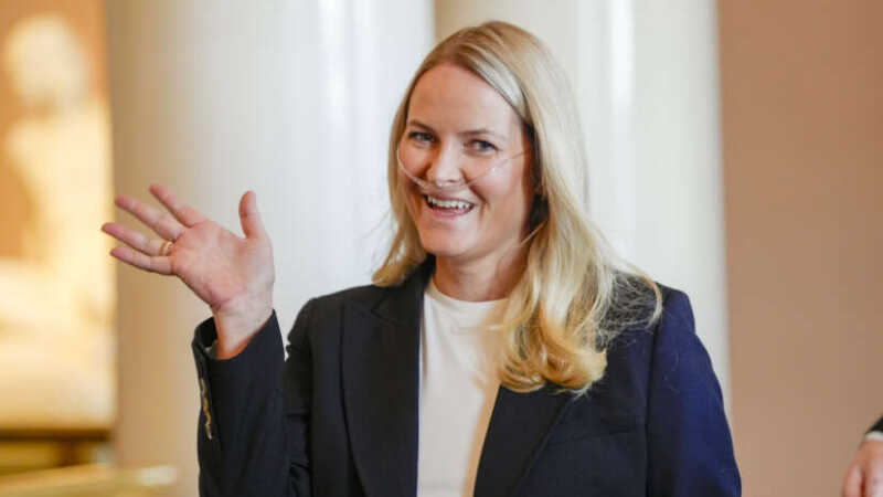 Med et nesekateter som tilfører oksygen direkte inn i nesen, stilte kronprinsesse Mette-Marit på jobb. Det er første gang hun har hatt det på mens hun er på jobb.