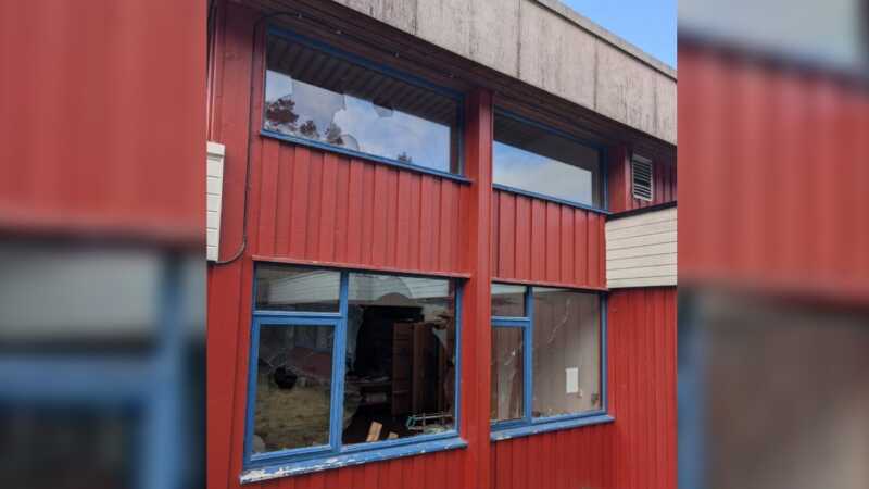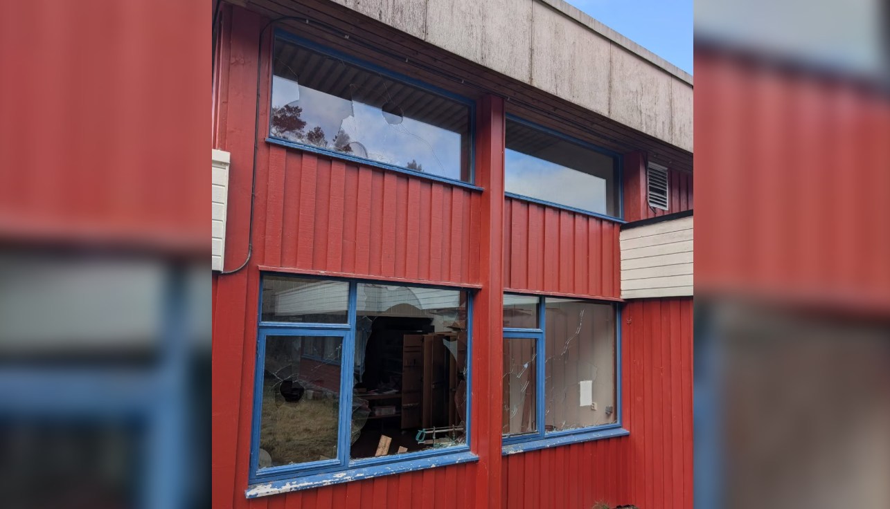 Kommunen må nå sikre bygget for å unngå ytterligere skader, og nye vinduer må settes inn.