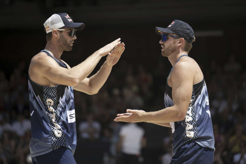 Anders Mol og Christian Sørum har vunnet sine to første kamper i sin sesongdebut i Brasil. Foto: Anthony Anex, Keystone via AP / NTB