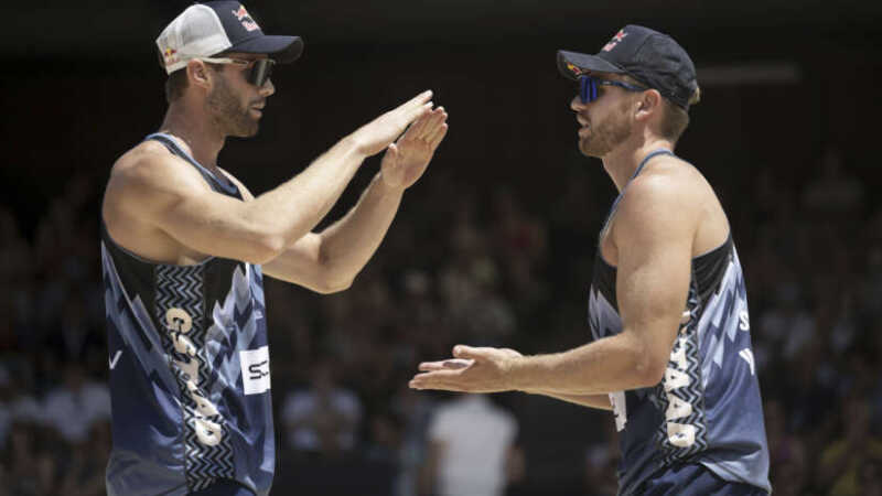 Anders Mol og Christian Sørum har vunnet sine to første kamper i sin sesongdebut i Brasil. Foto: Anthony Anex, Keystone via AP / NTB