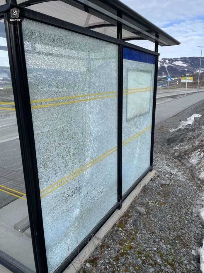 Ruteglassene i busskuret er knust, men det er foreløpig ukjent når skadene oppsto.