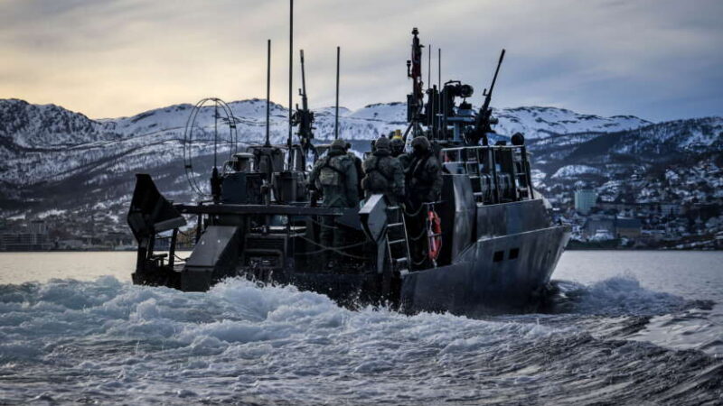 Norge og Storbritannia vurderer felles innkjøp av opptil 30 nye båter som skal brukes av Kystjegerkommandoen og Royal Marines. Bildet viser Shore Reconnaissance Troop (SRT) som gjennomførte hurtigkasting med Kystjegerkommandoen fra en Combat Boat 90 i 20 knop. Foto: Finn Stainer-Hutchins / Royal Navy / Handout / NTB