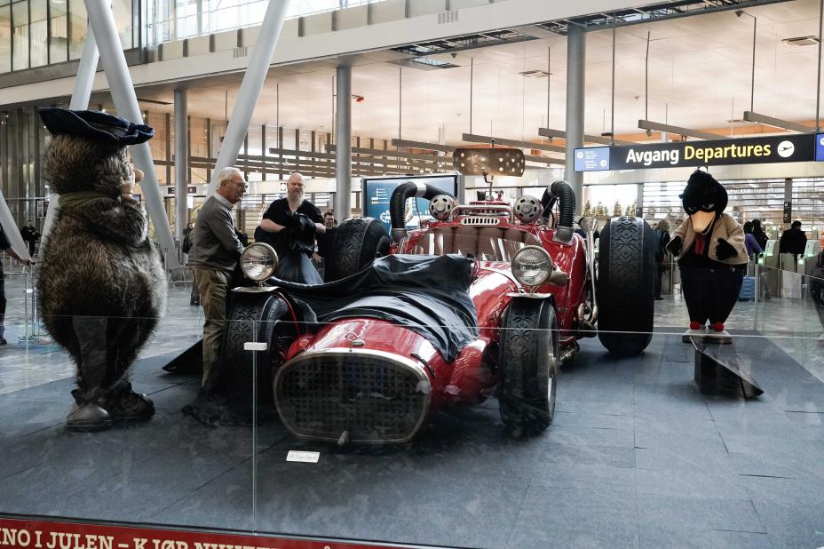 Kultur og underholdning: Den gilde bilen skal stå i avgangshallen – utenfor sikkerhetskontrollen – på Oslo lufthavn Gardermoen fra torsdag og til over nyttår for å reklamere for den nye filmen «Flåklypa: Fra Paris til Pyramidene, med premiere 1. juledag.