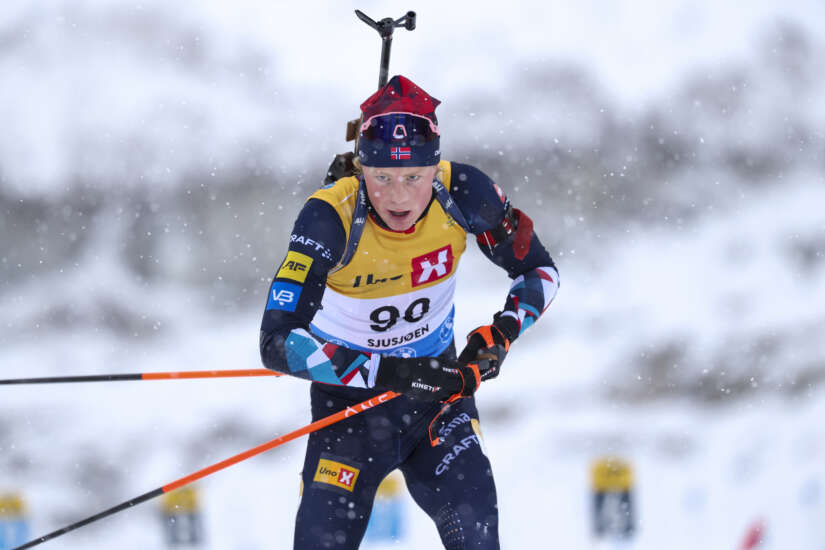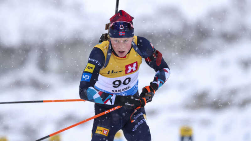 Einar Hedegart i aksjon på sprinten under sesongåpningen i skiskyting på Sjusjøen i november 2023. Foto: Geir Olsen / NTB.