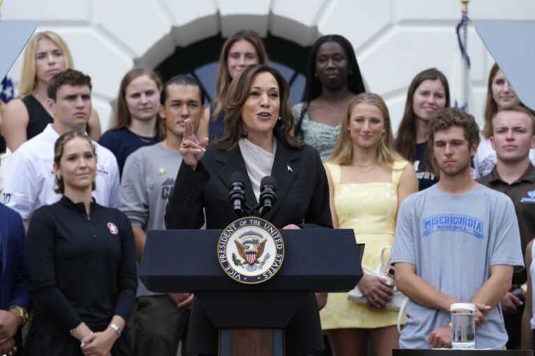 USAs visepresident Kamala Harris brukte sin første tale etter Joe Bidens kunngjøring om at han ikke tar gjenvalg, til å hylle presidenten.
