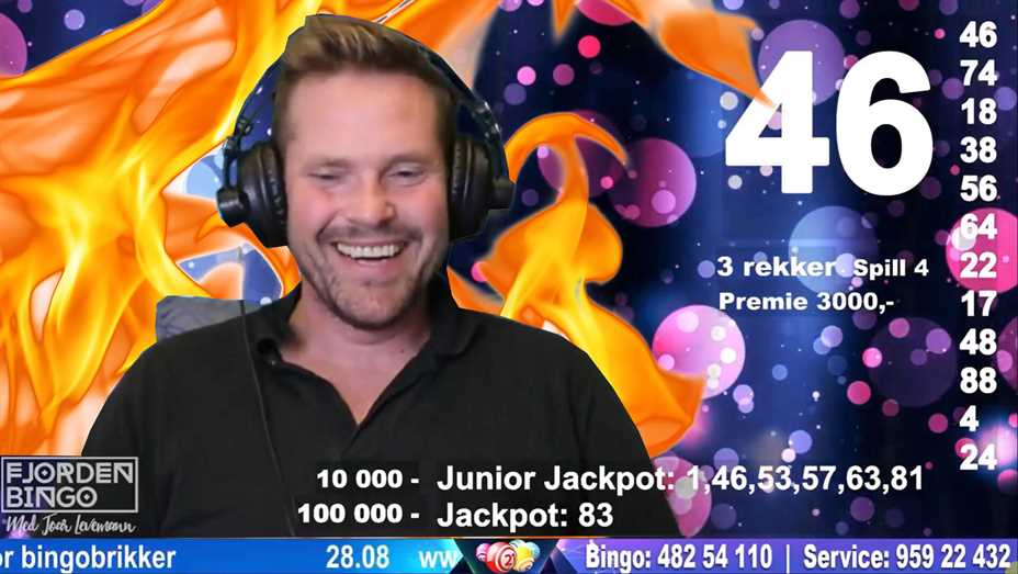 Etter bingosendingen på Bingokanalen sist onsdag, tok det fyr i dekorasjonene bak Joar Førde. Lokalene fikk brann og røykskader. Det blir likevel Fjorden bingo denne onsdagen.