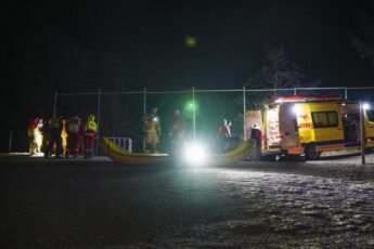 To personer er funnet livløse etter å ha gått gjennom isen på Aksdalsvannet. Redningshelikopter frakter dem til Haukeland sykehus, hvor HLR pågår.
